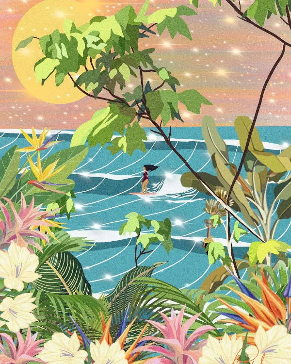 When viewing Michi Pichel's art, you're transported into to a tropical dream. She hopes her artwork inspires you to find beauty in your surroundings while connecting with your passions and love of the ocean, no matter how near or far you are from your favorite break!